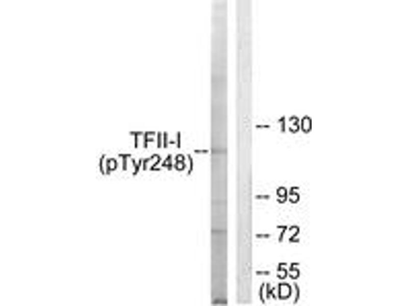 TFII-I (Phospho-Tyr248) Antibody detects endogenous levels of TFII-I only when phosphorylated at Tyr248.