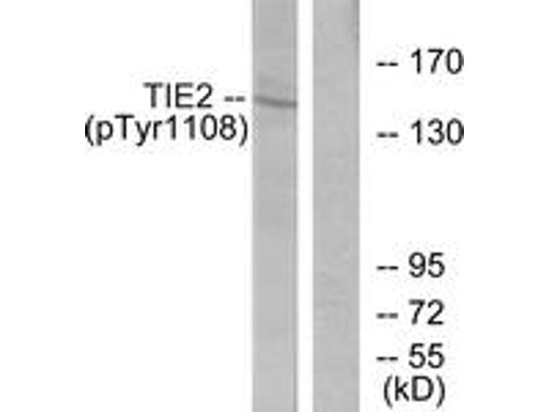 TIE2 (Phospho-Tyr1108) Antibody detects endogenous levels of TIE2 only when phosphorylated at Tyr1108.