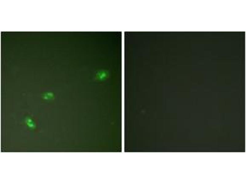 NPM (Phospho-Thr199) Antibody detects endogenous levels of NPM only when phosphorylated at Thr199.