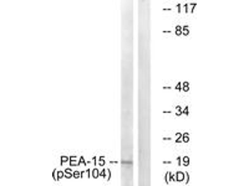 PEA-15 (Phospho-Ser104) Antibody detects endogenous levels of PEA-15 only when phosphorylated at Ser104.