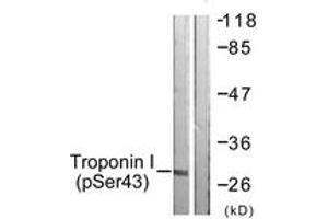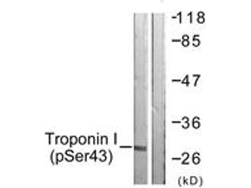 TNNI3 (Phospho-Ser43) Antibody detects endogenous levels of TNNI3 only when phosphorylated at Ser43.