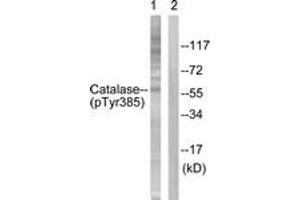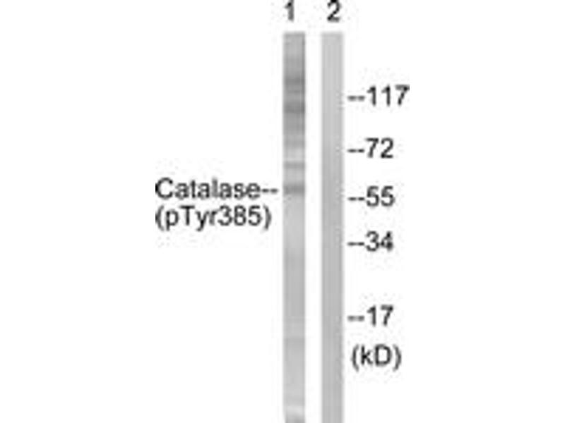 Catalase (Phospho-Tyr385) Antibody detects endogenous levels of Catalase only when phosphorylated at Tyr385.