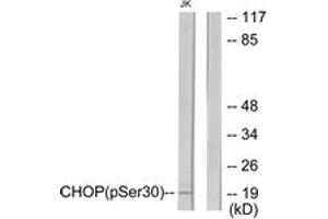 CHOP (Phospho-Ser30) Antibody detects endogenous levels of CHOP only when phosphorylated at Ser30.