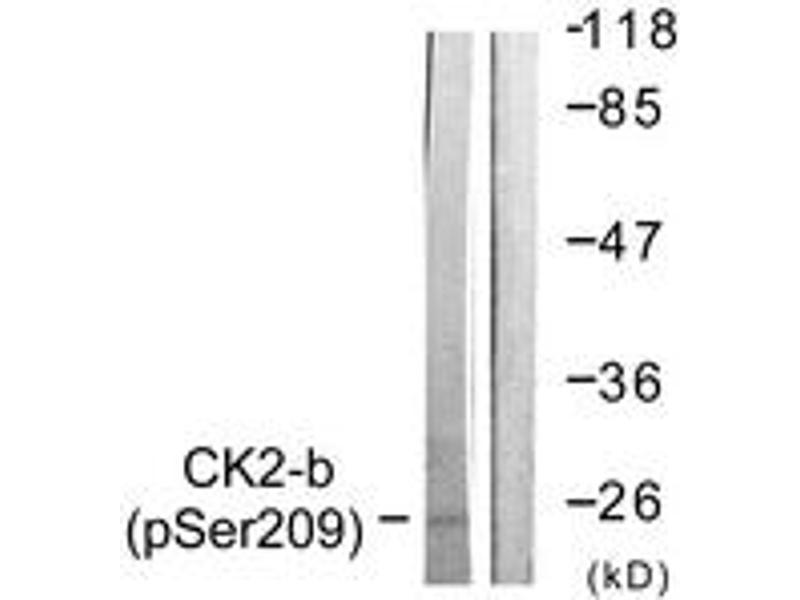CKII-beta (Phospho-Ser209) Antibody detects endogenous levels of CKII-beta only when phosphorylated at Ser209.