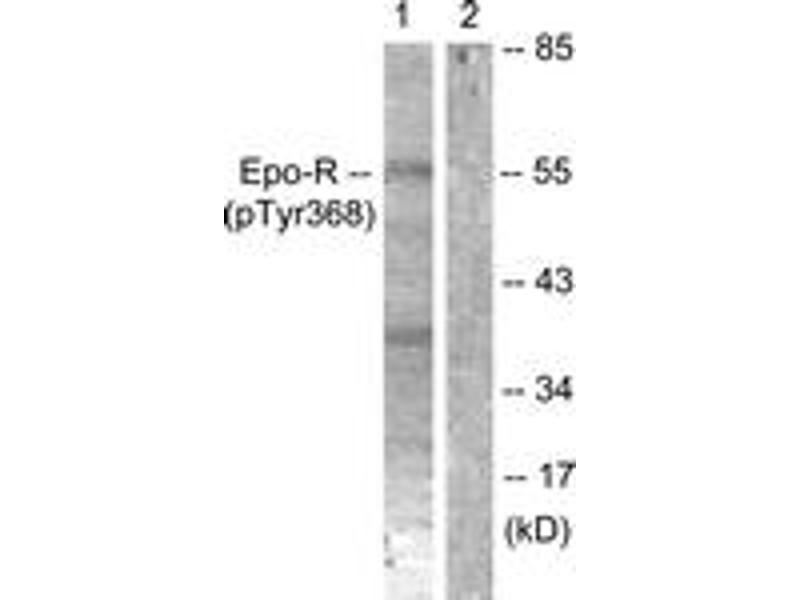 Epo-R (Phospho-Tyr368) Antibody detects endogenous levels of Epo-R only when phosphorylated at Tyr368.