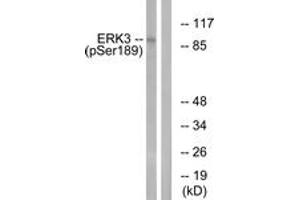 ERK3 (Phospho-Ser189) Antibody detects endogenous levels of ERK3 only when phosphorylated at Ser189.
