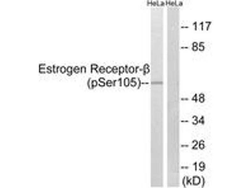 Estrogen Receptor-beta (Phospho-Ser105) Antibody detects endogenous levels of Estrogen Receptor-beta only when phosphorylated at Ser105.