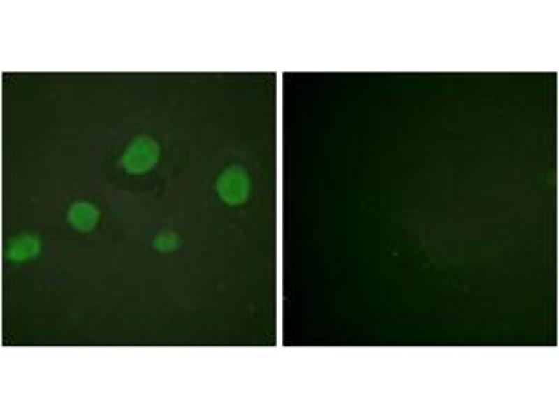 GATA3 (Phospho-Ser308) Antibody detects endogenous levels of GATA3 only when phosphorylated at Ser308.