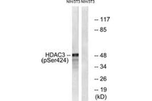 HDAC3 (Phospho-Ser424) Antibody detects endogenous levels of HDAC3 only when phosphorylated at Ser424.