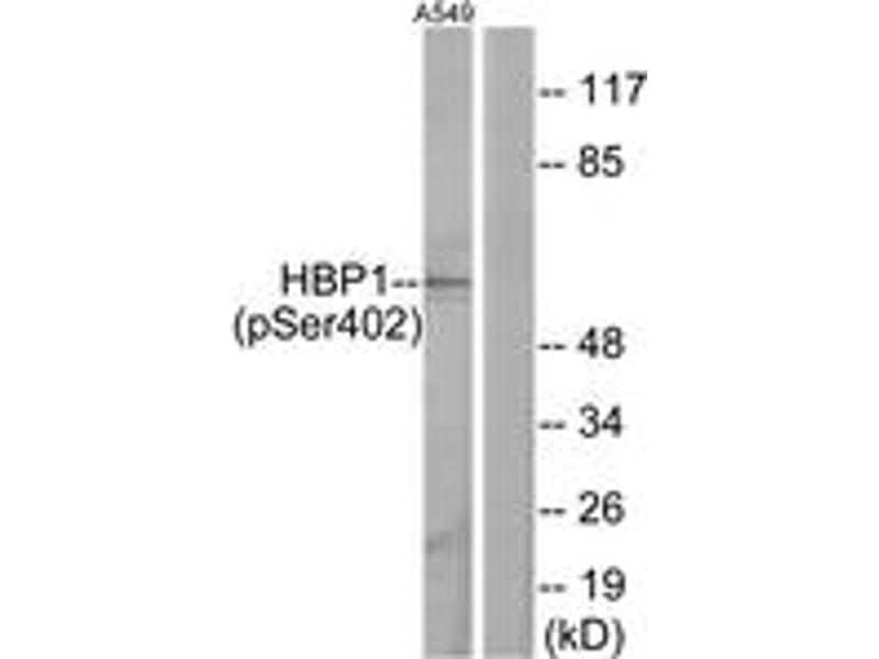 HBP1 (Phospho-Ser402) Antibody detects endogenous levels of HBP1 only when phosphorylated at Ser402.