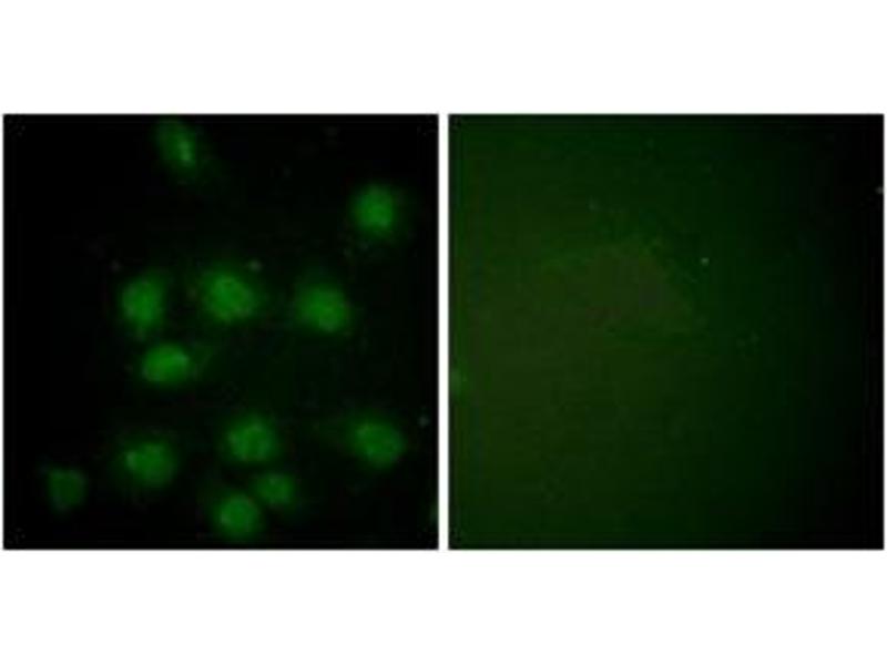NIFK (Phospho-Thr234) Antibody detects endogenous levels of NIFK only when phosphorylated at Thr234.