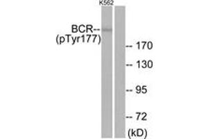 Bcr (Phospho-Tyr177) Antibody detects endogenous levels of Bcr only when phosphorylated at Tyr177.