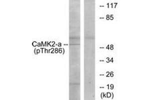 CaMK2 (Phospho-Thr286) Antibody detects endogenous levels of CaMK2 only when phosphorylated at Thr286.
