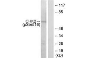 - The antiserum was produced against synthesized peptide derived from human Chk2 around the phosphorylation site of Ser516.
