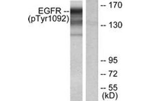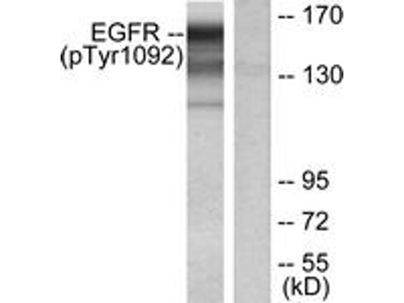EGFR (Phospho-Tyr1092) Antibody detects endogenous levels of EGFR only when phosphorylated at Tyr1092.
