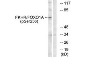 FKHR (Phospho-Ser256) Antibody detects endogenous levels of FKHR only when phosphorylated at Ser256.