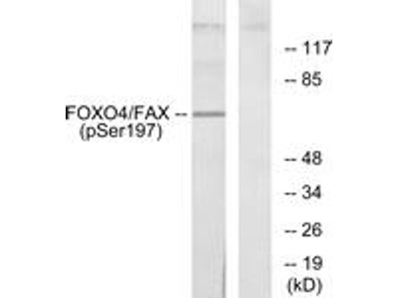 AFX (Phospho-Ser197) Antibody detects endogenous levels of AFX only when phosphorylated at Ser197.