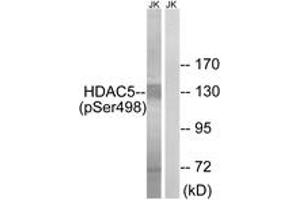 HDAC5 (Phospho-Ser498) Antibody detects endogenous levels of HDAC5 only when phosphorylated at Ser498.