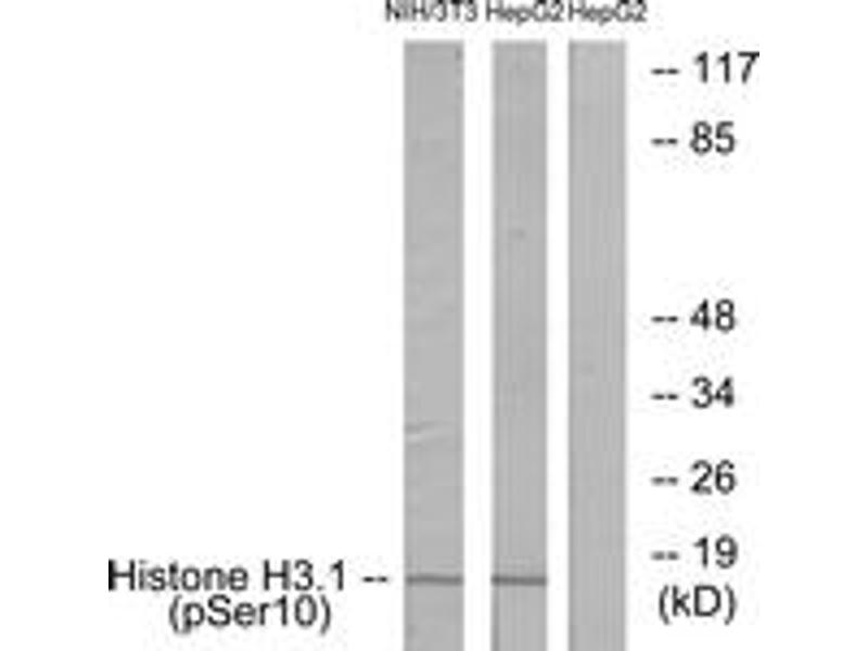 Histone H3.1 (Phospho-Ser10) Antibody detects endogenous levels of Histone H3.1 only when phosphorylated at Ser10.