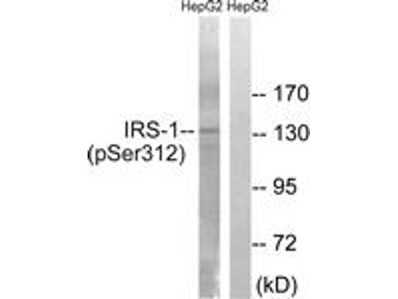 IRS-1 (Phospho-Ser312) Antibody detects endogenous levels of IRS-1 only when phosphorylated at Ser312.