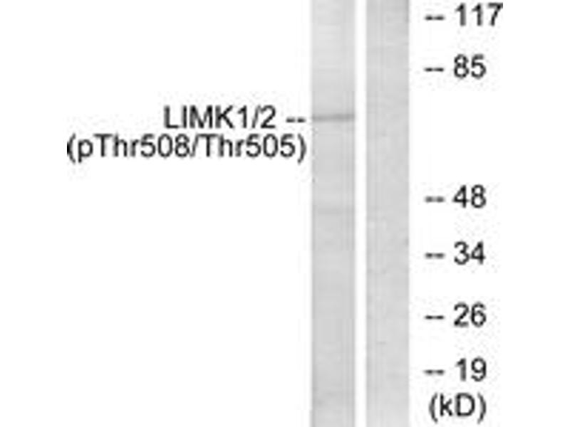 LIMK2 (Phospho-Thr505) Antibody detects endogenous levels of LIMK2 only when phosphorylated at Thr505.