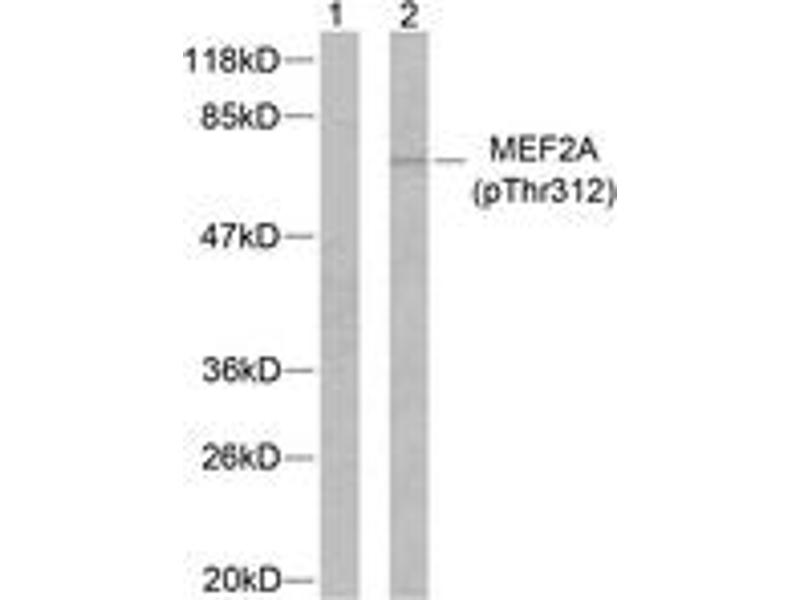 MEF2A (Phospho-Thr312) Antibody detects endogenous levels of MEF2A only when phosphorylated at Thr312.