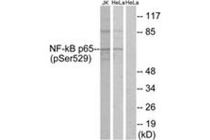 NF-kappaB p65 (Phospho-Ser529) Antibody detects endogenous levels of NF-kappaB p65 only when phosphorylated at Ser529.