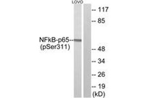 NF-kappaB p65 (Phospho-Ser311) Antibody detects endogenous levels of NF-kappaB p65 only when phosphorylated at Ser311.