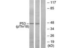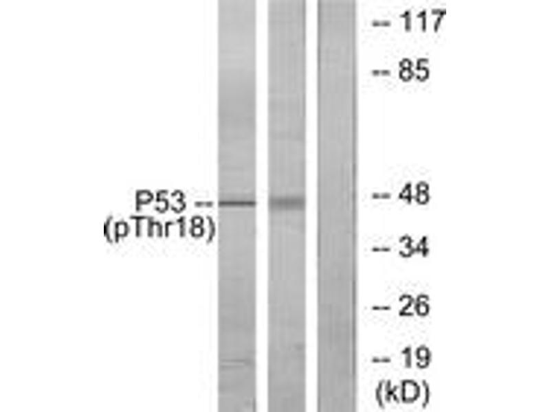 p53 (Phospho-Thr18) Antibody detects endogenous levels of p53 only when phosphorylated at Thr18.