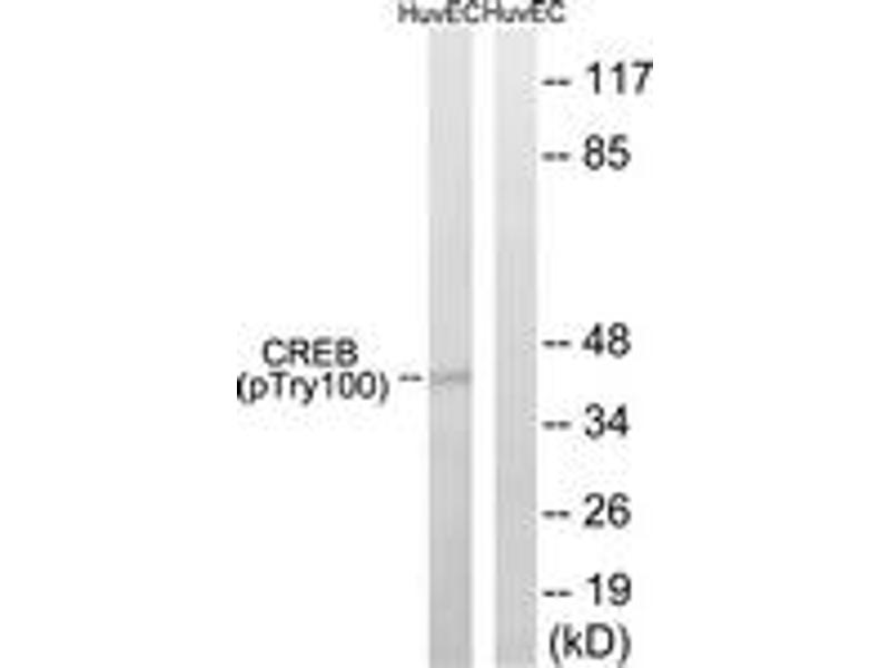 CREB (Phospho-Thr100) Antibody detects endogenous levels of CREB only when phosphorylated at Thr100.