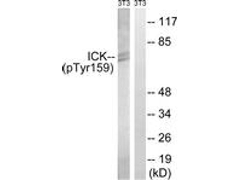 ICK (Phospho-Tyr159) Antibody detects endogenous levels of ICK only when phosphorylated at Tyr159.