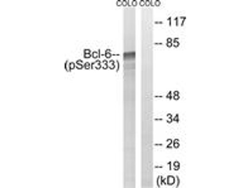 Bcl-6 (Phospho-Ser333) Antibody detects endogenous levels of Bcl-6 only when phosphorylated at Ser333.