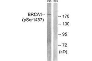 BRCA1 (Phospho-Ser1457) Antibody detects endogenous levels of BRCA1 only when phosphorylated at Ser1457.