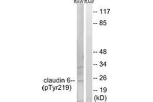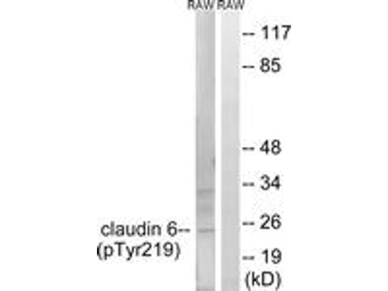 - The antiserum was produced against synthesized peptide derived from human Claudin 6 around the phosphorylation site of Tyr219.