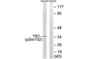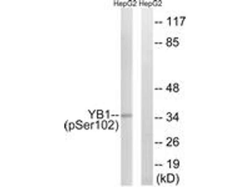 YB1 (Phospho-Ser102) Antibody detects endogenous levels of YB1 only when phosphorylated at Ser102.
