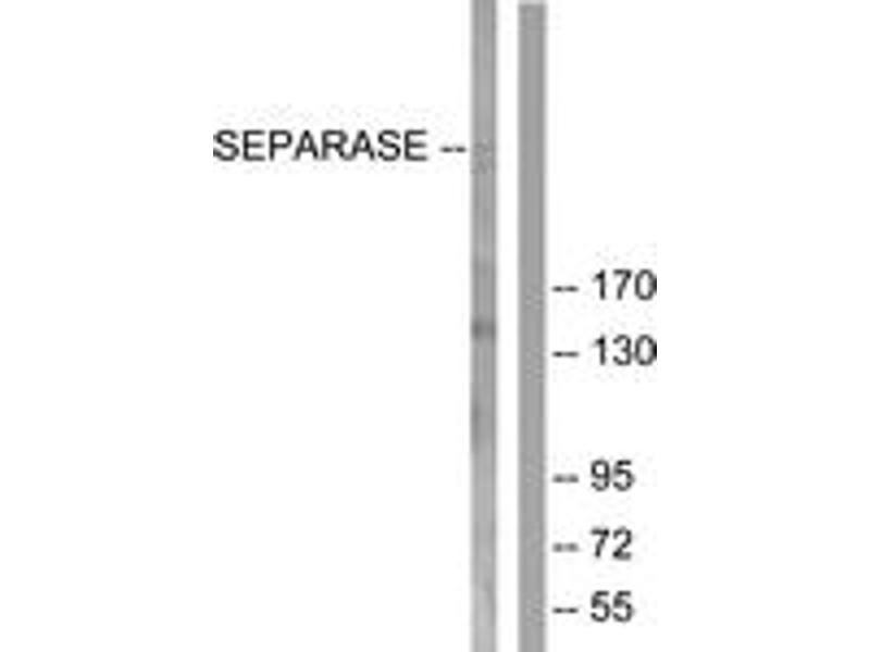 SEPARASE Antibody detects endogenous levels of total SEPARASE protein.