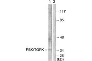PBK/TOPK Antibody detects endogenous levels of total PBK/TOPK protein.