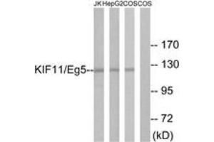 KIF11/Eg5 Antibody detects endogenous levels of total KIF11/Eg5 protein.