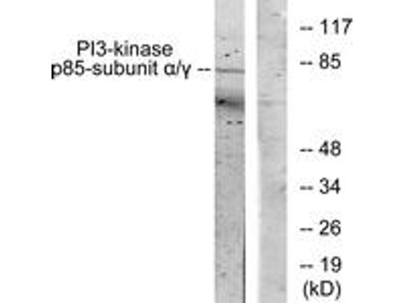 - The antiserum was produced against synthesized peptide derived from human PI3-kinase p85-alpha/gamma.