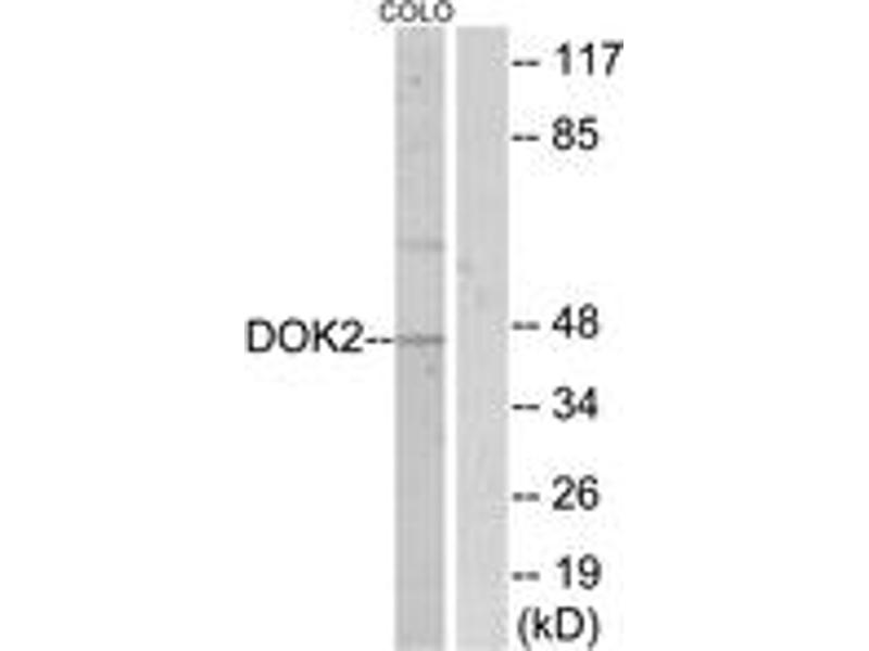 - The antiserum was produced against synthesized peptide derived from human p56 Dok-2.