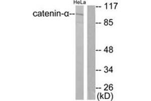 Catenin-alpha1 Antibody detects endogenous levels of total Catenin-alpha1 protein.