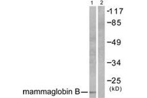 Mammaglobin B Antibody detects endogenous levels of total Mammaglobin B protein.
