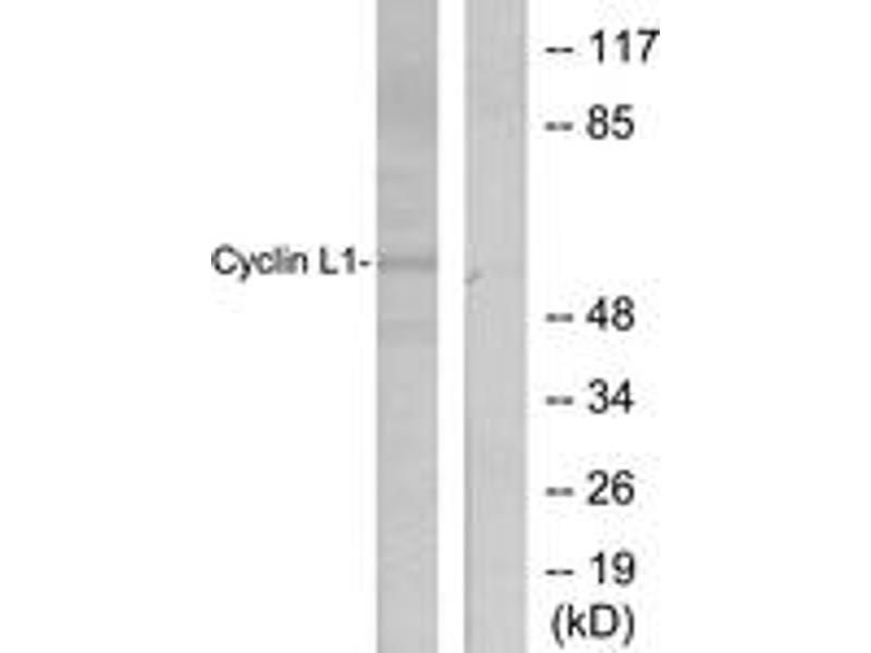- The antiserum was produced against synthesized peptide derived from human Cyclin L1.