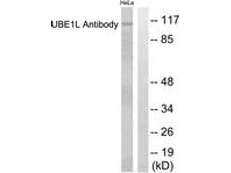 - The antiserum was produced against synthesized peptide derived from human UBE1L.
