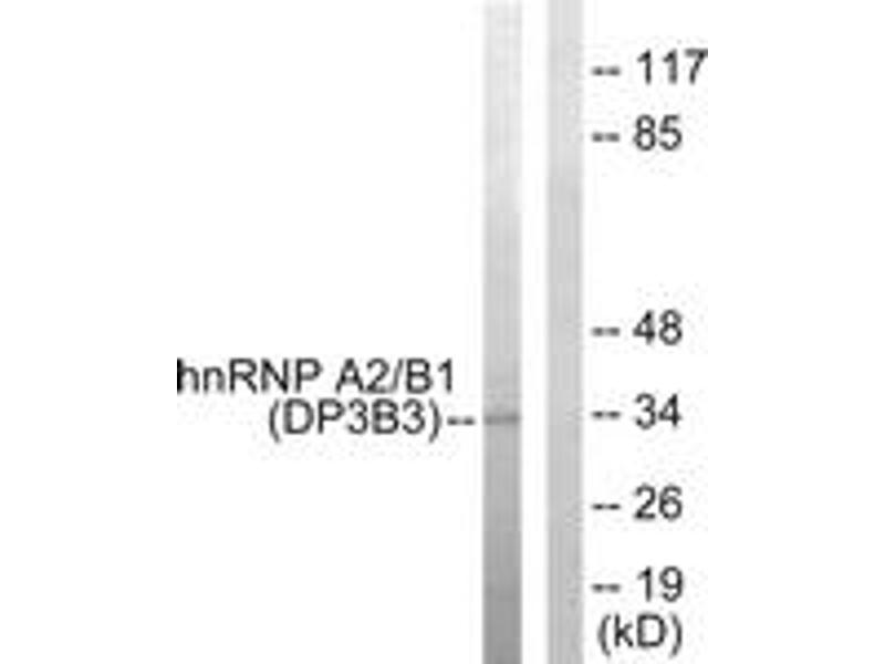 hnRNP A2/B1 Antibody detects endogenous levels of total hnRNP A2/B1 protein.