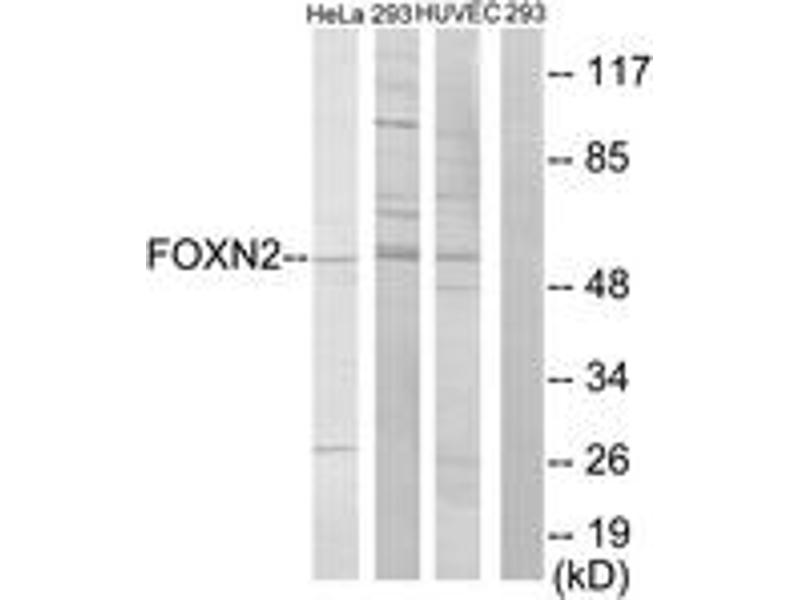 FOXN2 Antibody detects endogenous levels of total FOXN2 protein.