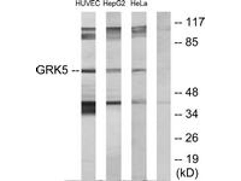 - The antiserum was produced against synthesized peptide derived from human GRK5.