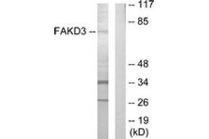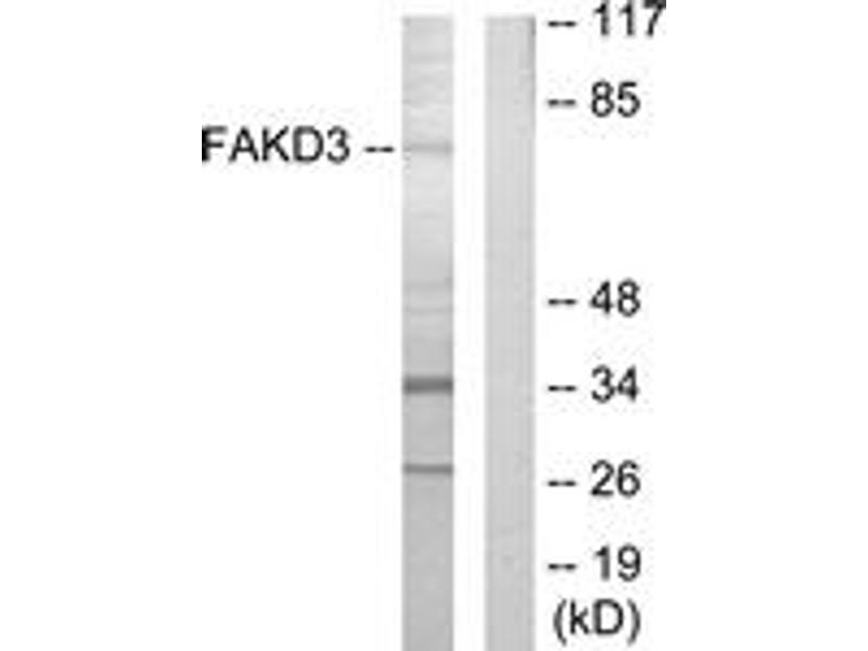 FAKD3 Antibody detects endogenous levels of total FAKD3 protein.