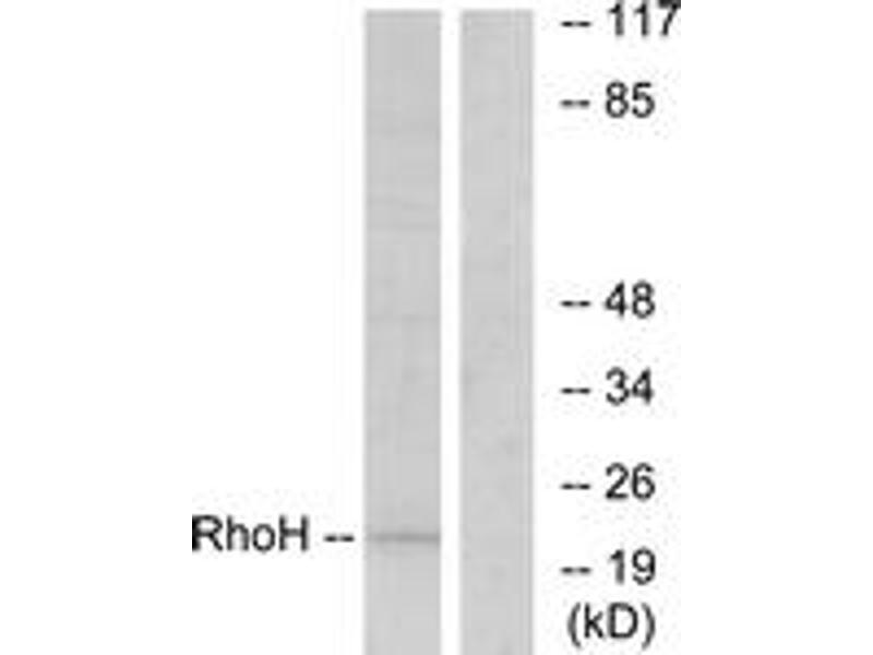 - The antiserum was produced against synthesized peptide derived from human RhoH.