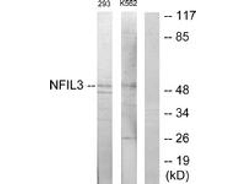 NFIL3 Antibody detects endogenous levels of total NFIL3 protein.